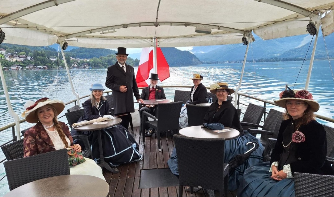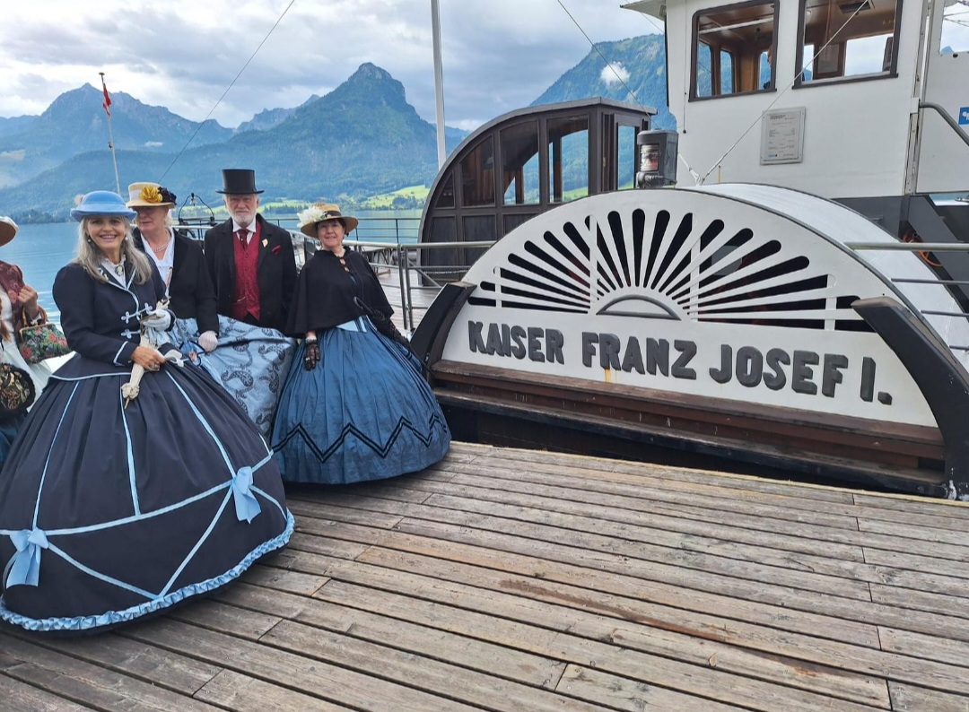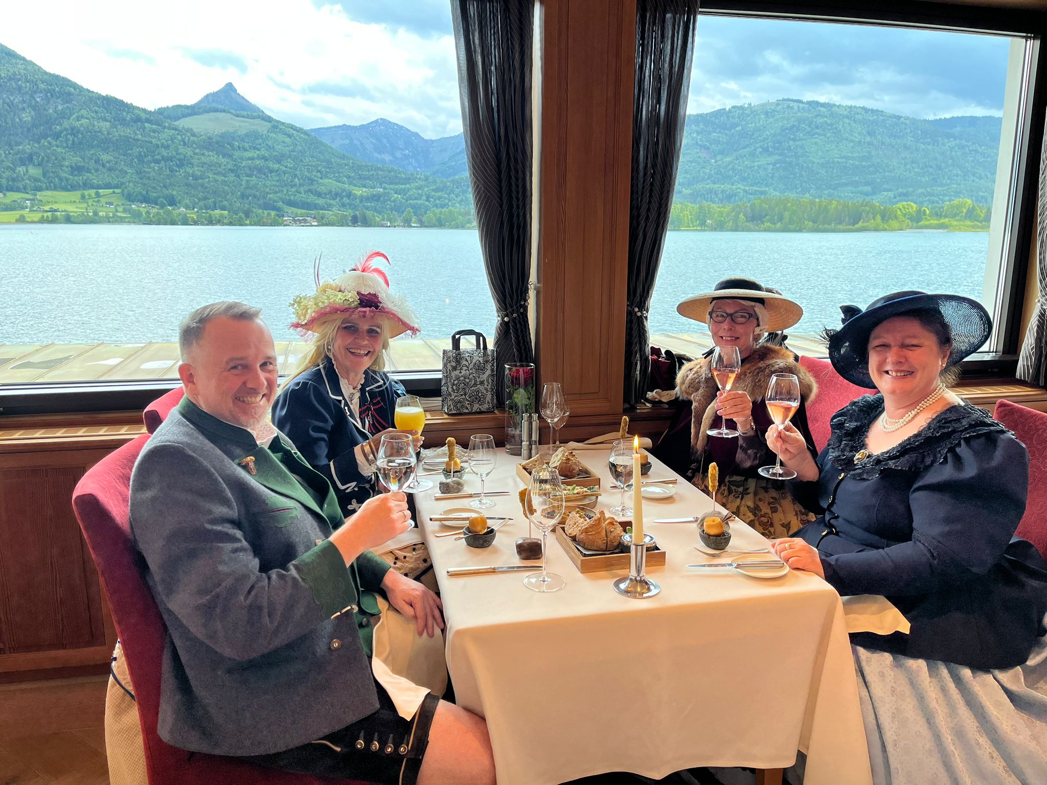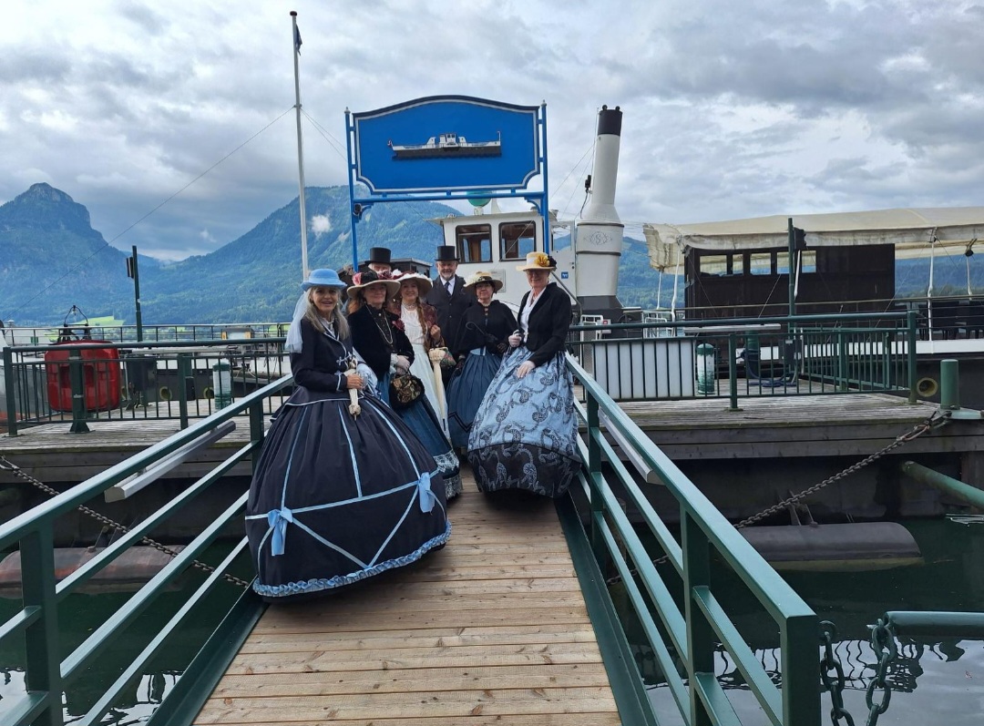 Sie waren sehr an unserer Geschichte interessiert und als sie hörten, dass Königin Olga mit Kaiserin Sisi eng befreundet war, wurden wir ganz spontan an den Wolfgangsee eingeladen und natürlich mussten wir im Schwarzen Rössl übernachten.