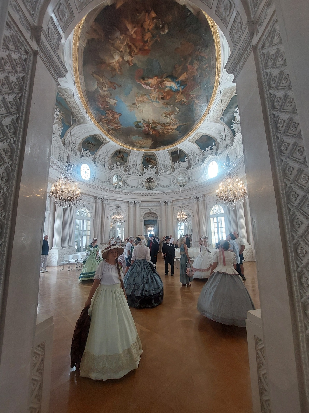 Es war unglaublich, was wir für einen Aufstand auslösten, als wir in historischer Kleidung dort ankamen. Als wir nur einen kurzen Moment auf de Balkon erschienen, bildete sich unten auf der Straße eine riesen Menschenmenge und machte Fotos von uns.