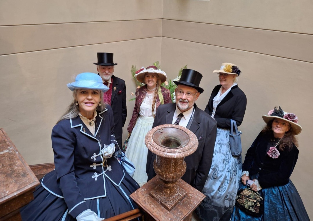 Dieses Mal konnten sich unsere neuen Mitglieder Jasmin und Frank, der Allround Mann aus Vaihingen Enz, ein Bild der wunderschönen alten Dinge im Haus der Kunst machen. Frank hatte sich ruckzuck perfekt historisch eingekleidet. Wir freuen uns sehr auch ihn in unserer Mitte zu haben und hoffen, dass wir nächstes Jahr wieder viele tolle Erlebnisse miteinander teilen können. Wir haben uns schon eine neue Rolle für ihn ausgedacht, Mal sehen, wie er bei den Besuchern unserer Veranstaltungen ankommt.